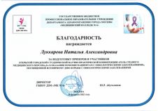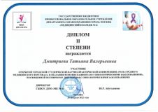 Работа выпускницы колледжа удостоена диплома II степени в научно-практической конференции «Роль среднего медицинского персонала в оказании помощи пациентам с онкологическими заболеваниями».