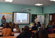 Никита Насибулин и Влада Елькуева рассказали учащимися 9-х классов о Петрозаводском базовом медицинском колледже, специальностях на 2019/20 учебный год, а также подробно остановились на условиях приема.