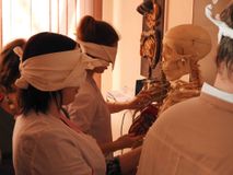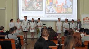 Открытое занятие в форме игры-конкурса «Терапевтическое метро», прошедшее 28 марта, показало, что в нашем колледже не забыты старые добрые традиции. Организаторами стали преподаватели терапии Н. А. Луккарева и А. Ф. Купреенкова. Три команды из студентов 411-й группы специальности «Лечебное дело» выполняли задания на станциях: «Топографическая», «Анатомический музей», «Аускультативная», «Звучащий орган», «Частное бюро «Мэгрэ и Ко», «Бюро находок», «Рентгенологическая», «Исследовательская», «Скорая неотложная помощь», «Видеосалон «Habitus», «Терапевтический архив» и «Лирическая».