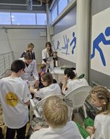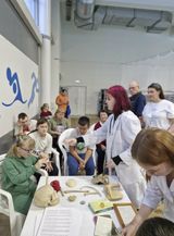 Было организовано две станции: «Офтальмологическая» и «Анатомический театр». Студенты демонстрировали правильное наложение повязок, измеряли артериальное и внутриглазное давление, познакомили ребят с возможностями бинокулярного зрения.