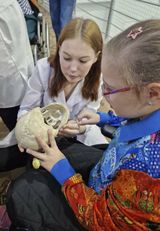 В «анатомическом театре» развернулось целое представление. Школьники с ограниченными возможностями здоровья определяли расположение костей в скелете, их функции, расположение по отношению к себе. Слабовидящие участники, лишенные возможности визуализировать препараты, определяли их мануально.