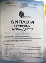 Ее работа «Диагностика сформированности профессиональной компетенции в области паллиативной медицины у студентов медицинского колледжа» была представлена на секции «Инновационная деятельность в образовании» и удостоена диплома II степени. Научный руководитель — Елена Сергеевна Казько, кандидат педагогических наук, доцент Института педагогики и психологии ПетрГУ.