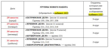 «ЛЕЧЕБНОЕ ДЕЛО» (после 9 класса)Группы 111, 112«ЛАБОРАТОРНАЯ ДИАГНОСТИКА» — группа 241 |