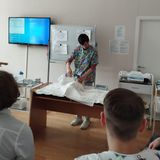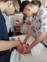 Проведение искусственной вентиляции легких мешком Амбу и закрытый массаж сердца в ритме "вальса" отрабатывались на манекене - симуляторе младенца "Малыш-4". При этом каждый студент получил возможность сделать дыхание ребенка полноценным.