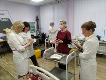 Одновременно продолжаются государственные экзамены для студентов специальностей "Сестринское дело" и "Фармация", обучающихся по новым образовательным стандартам.