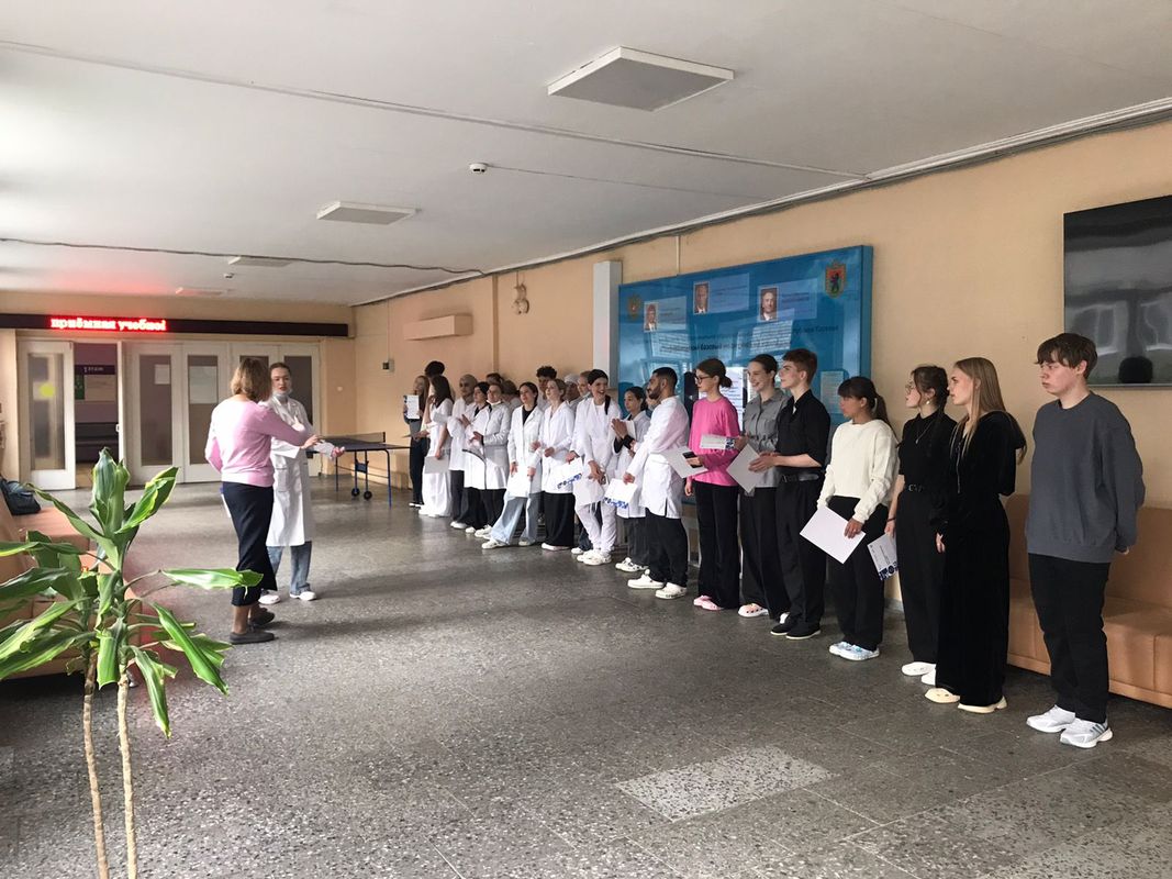 Также на торжественной линейке студентам 171с группы специальности "Стоматологическое дело" были вручены благодарственные письма от Анны Лопаткиной, организатора экологических акций, лидера общественно политического движения "Народный фронт", за активное участие в волонтёрской деятельности.
