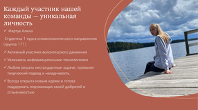 Что успели сделать за неделю наши волонтеры, смотрите в презентации, подготовленной студентами совместно с советником директора по воспитанию Ириной Борисовной Подгайской.