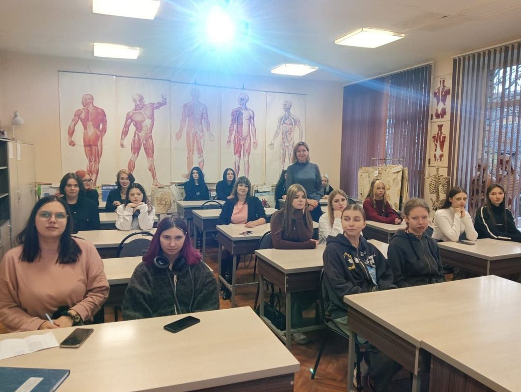 Встречу провели Екатерина Леонидовна Щербакова, преподаватель специальных дисциплин, и Ирина Борисовна Подгайская, советник директора по воспитанию. Студенты приняли участие в беседах о видах заболеваний кожи, а также о правильном питании и уходе за кожными покровами.