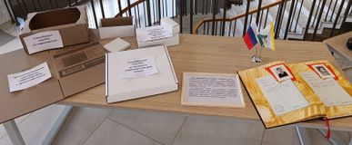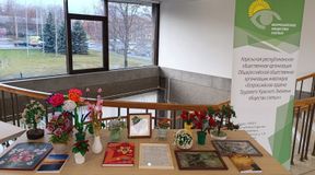 Перед началом фильма студенты познакомились с выставкой творческих работ членов Карельской республиканской организации ВОС и изделий инклюзивного производства хозяйственного общества ВОС - ООО "Петрозаводское предприятие "ОНЕГОТАРА", а также техническими средствами реабилитации для инвалидов по зрению.