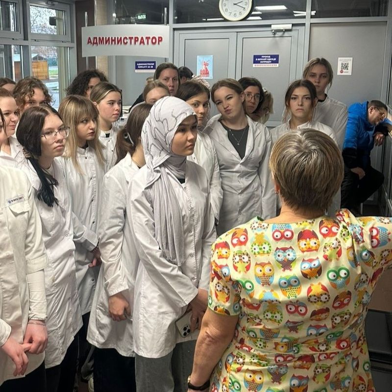 Студенты познакомились с организацией работы и структурой больницы, изучили путь пациента в приемном отделении больницы, включая поступление, регистрацию, обследование, постановку диагноза и направление в лечебное отделение, а также пообщались с сотрудниками станции скорой и неотложной медицинской помощи больницы.