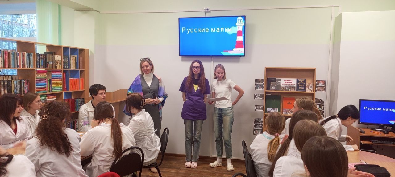 Активисты Движения Первых, студентки колледжа Ульяна Сороко и Алина Фартух совместно с советником директора по воспитанию Ириной Борисовной Подгайской провели интеллектуальную игру "Русские маяки".