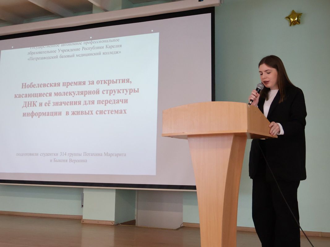 В Петрозаводском базовом медицинском колледже состоялась научная студенческая конференция "Открытия через века: новые горизонты", посвященная 125-летию со дня вручения первой Нобелевской премии.