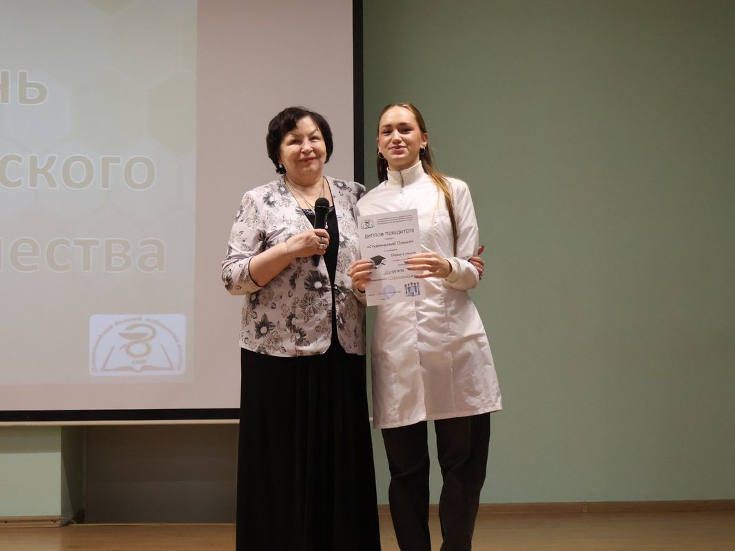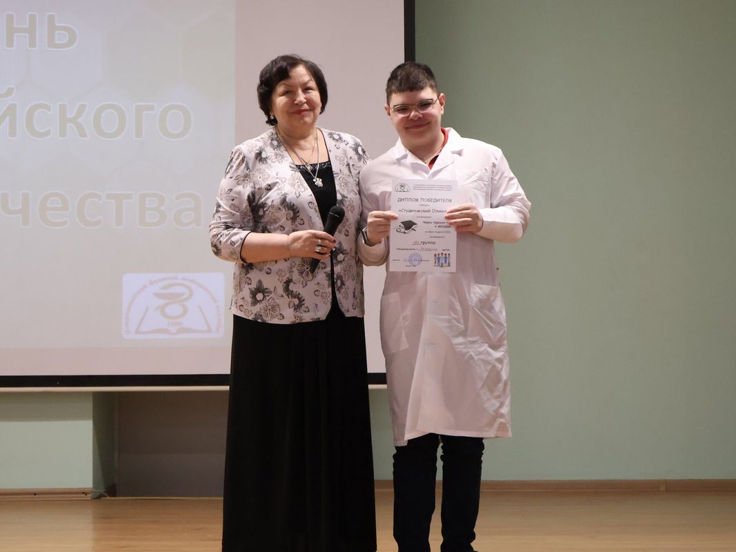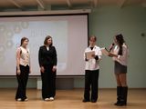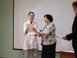 Директор колледжа, Заслуженный врач Республики Карелия Елена Ивановна Аксентьева поздравила студентов с предстоящим праздником и подвела итоги конкурса "Студенческий Олимп", вручив представителям групп дипломы победителей в номинациях "На сцене как в жизни", "Через тернии - к звездам!", "Первые из "Первых" и многих других.