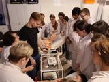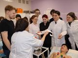Обучающиеся выпускных курсов вспомнили значение основных зубцов и интервалов в норме и при патологии и, с помощью статистов и учебных манекенов, отработали схему наложения электродов для различных отведений при электрокардиографии.