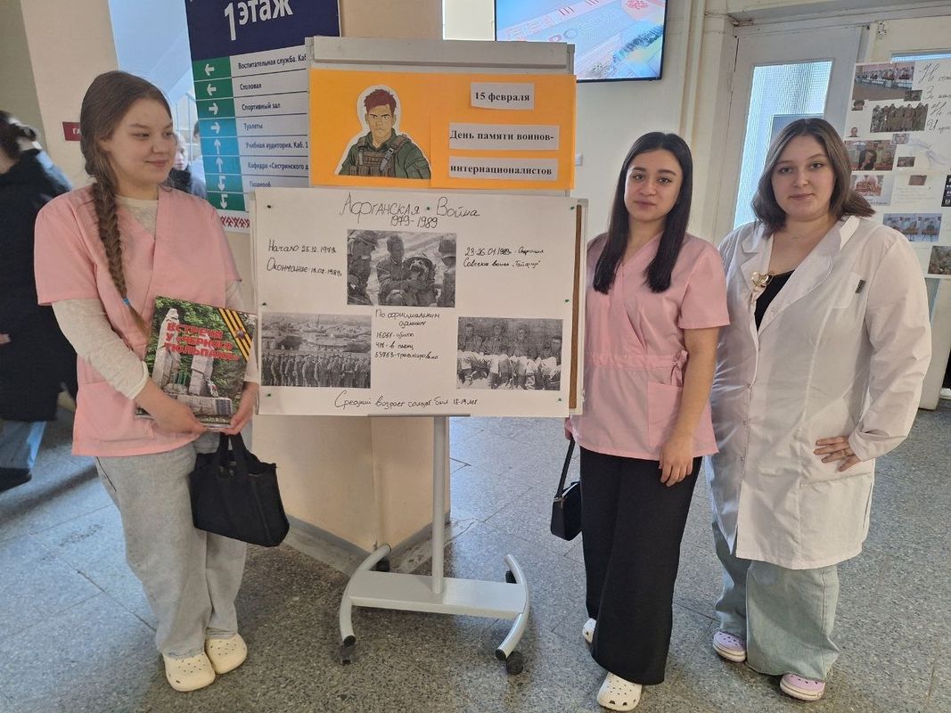 В колледже также состоялся урок мужества, на котором студенты 114 группы специальности "Лечебное дело" посмотрели документальный фильм "Необъявленная война" и обсудили причины ввода советских войск в Афганистан и значение афганской войны в истории страны и мира.
