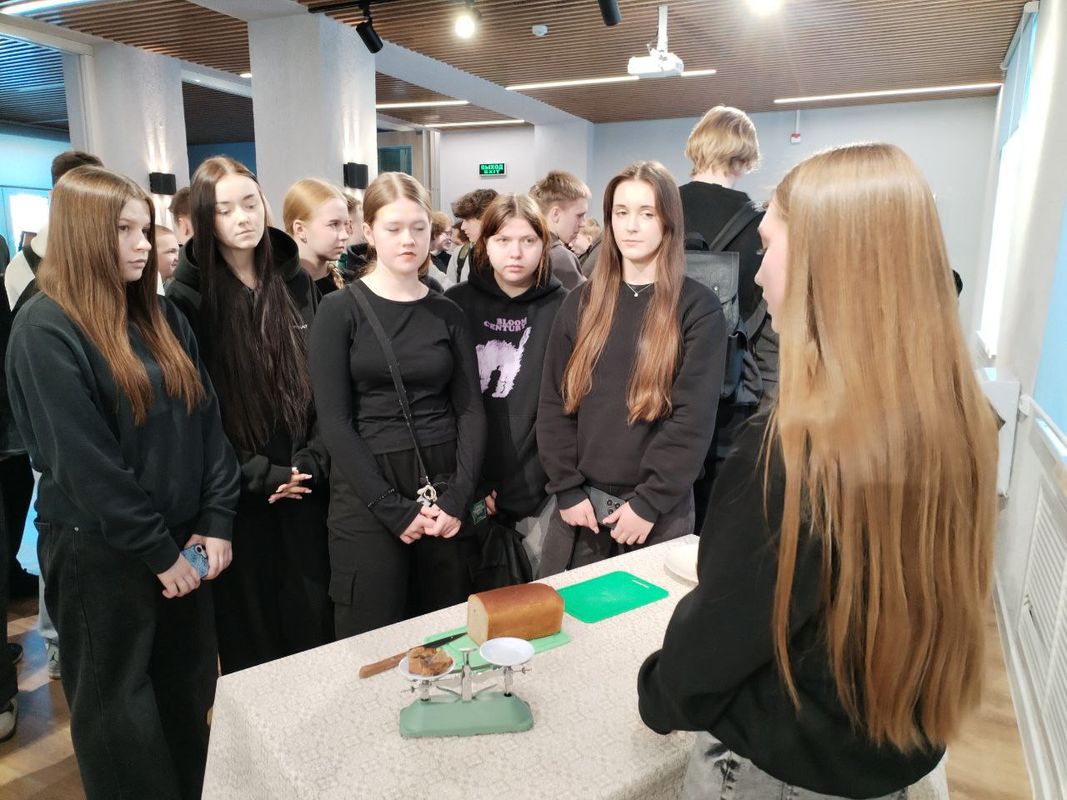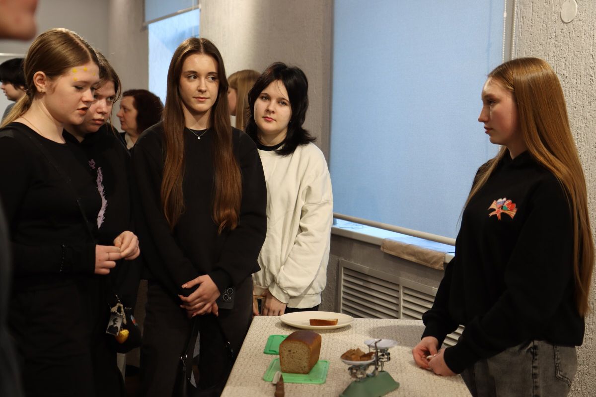 В ходе встречи участникам рассказали о блокадном хлебе - главном символе выживания в осажденном Ленинграде. Ребята узнали, из каких ингредиентов он состоял, почему именно таким был его состав, и какая минимальная порция еды в блокадные дни приравнивалась к дневной норме хлеба на одного человека.
