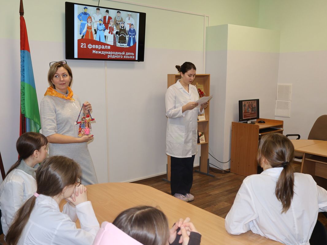 К Международному дню родного языка в мультимедийном центре было представлено языковое разнообразие обучающихся Петрозаводского базового медицинского колледжа.