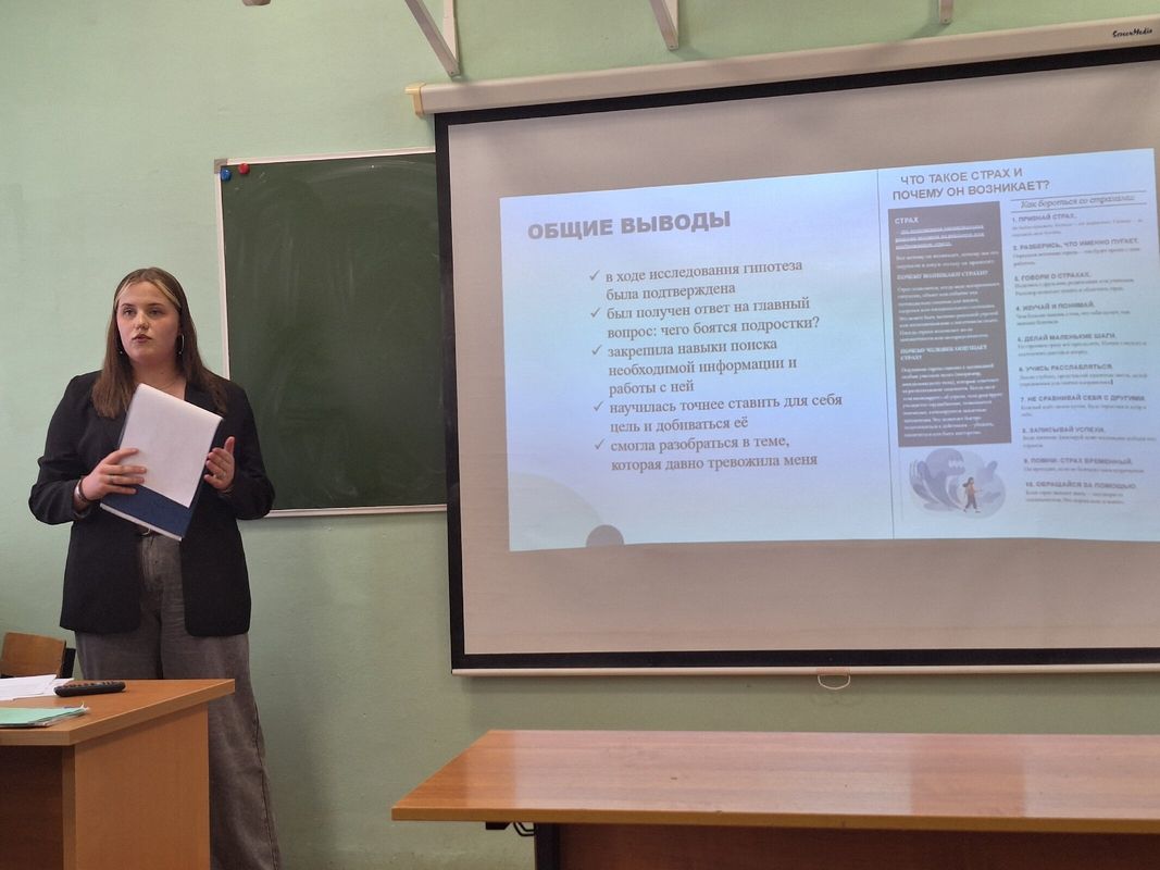 Алина Семукова (251 группа специальность "Сестринское дело") достойно представила результаты своего исследования на тему "Типичные страхи подростков" (научный руководитель - Григорьева Елена Васильевна).