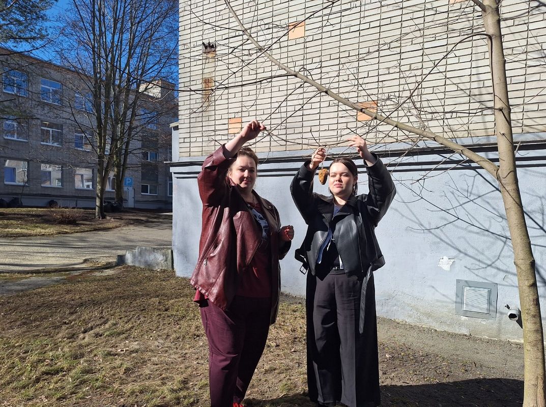 1 апреля в честь Международного дня птиц студенты 153 группы специальности "Сестринское дело" провели акцию "Покормите птиц", а участники Студенческого совета Дарья Эриксон и Юлия Афонина сделали съедобную кормушку по особому рецепту.