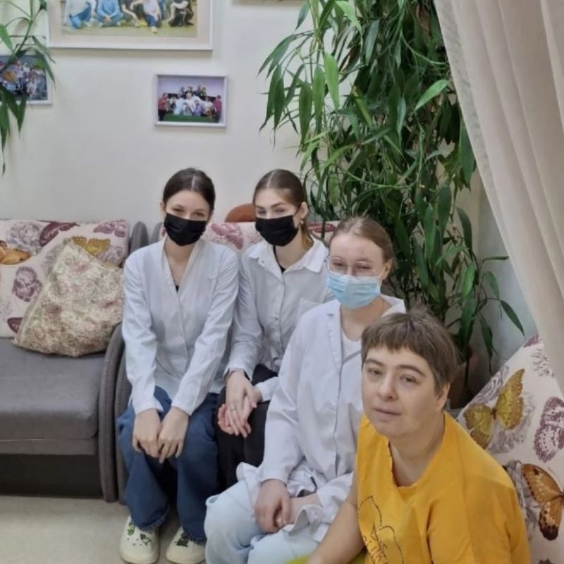 В период практики студенты под руководством преподавателя Натальи Александровны Луккаревой знакомили пациентов с навыками оказания первой помощи и самопомощи при неотложных состояниях, проводили контроль показателей гемодинамики, принимали участие в тренингах и присутствовали на занятиях педагогов-психологов и социальных педагогов.