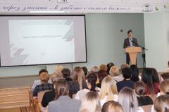 Перед гостями встречи с приветственным словом выступила директор колледжа Елена Ивановна Аксентьева, акцентировав внимание на высокой потребности медицинских организаций Республики Карелия в специалистах со средним медицинским образованием. О существующих мерах социальной поддержки, предусмотренных федеральными и ведомственными программами, выпускников проинформировал начальник отдела государственной службы и кадров Министерства здравоохранения Республики Карелия Евгений Викторович Ильин.