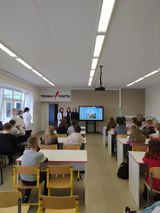 Следующий объект — Шелтозерская средняя школа. С учениками 8–10 классов студенты провели профориентационную работу, квест-игру и офтальмологический практикум «Познай себя» с элементами профилактики нарушений зрения. Учащиеся с интересом слушали, выполняли все задания и наградили участников бурными аплодисментами.