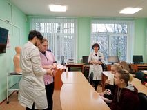 Школьникам показали, как проводится опрос пациента, производится аускультация сердца и легких, определяется пульс и измеряется артериальное давление. Подробно им объяснили, что такое неотложные состояния и как в условиях скорой помощи проводится их диагностика.